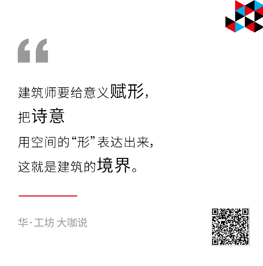 但是还不够,还要“诗意”,就是精神层面的含义,也是今天人居环境更重要的价值走向。在满足使用功能时,还有对文化的崇敬,对历史的眷顾。就像莎士比亚讲的:“我们要给意义赋形”,建筑师要把这些“诗意”用空间的“形”表达出来,这就是建筑的境界。