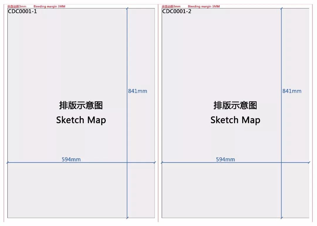 ④Specification :Two A1-size vertical panels (841mmx594mm),each drawingshould reserve 3MM margin for bleedbox, and in the top left corner where shouldleave a 15MM-height mark that demonstrates" registration serial number ,suchas "CDC0001-1".