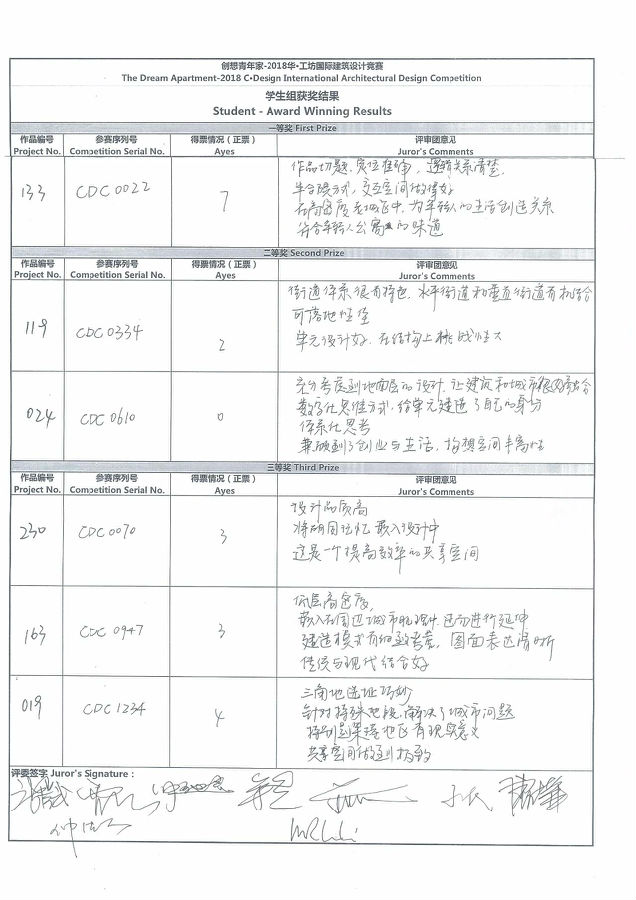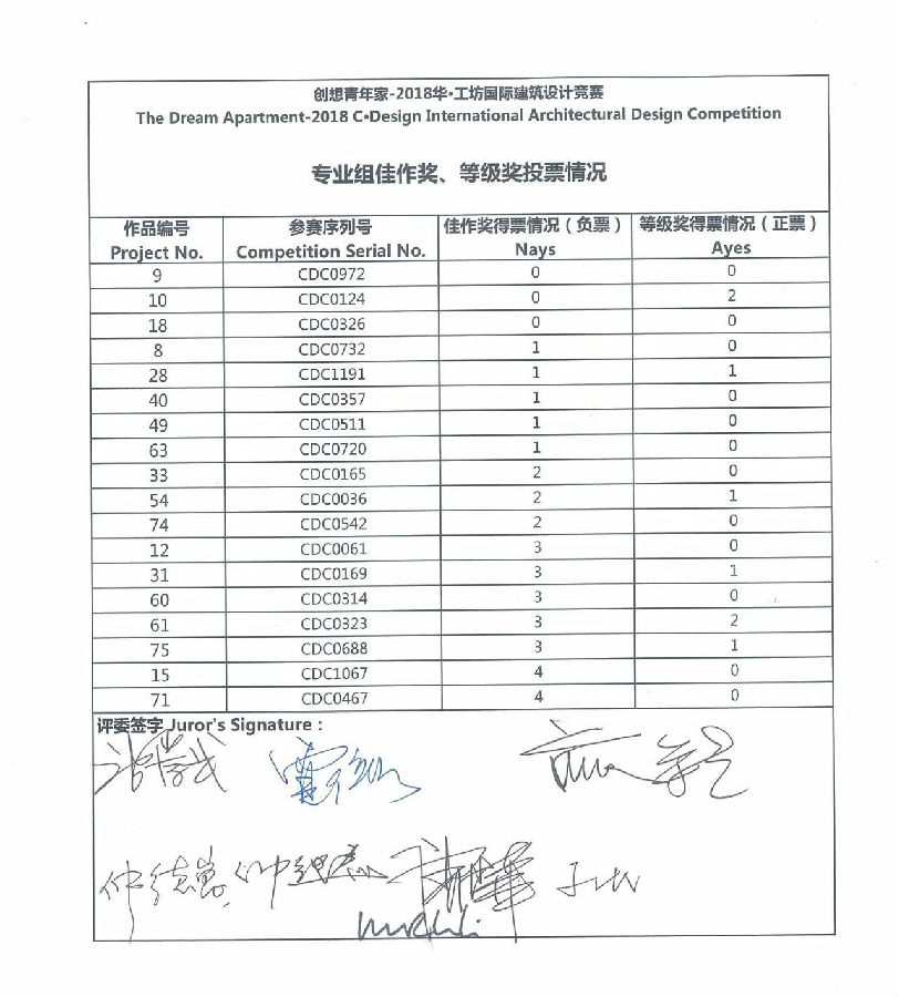 在专业组的评审中,鉴于对专业性的考虑,经评委会对入围的18组作品认真评议后,进行投票,作品得票数量均不过半数,因此,本次竞赛专业组没有产生等级奖,仅产生佳作奖18组。