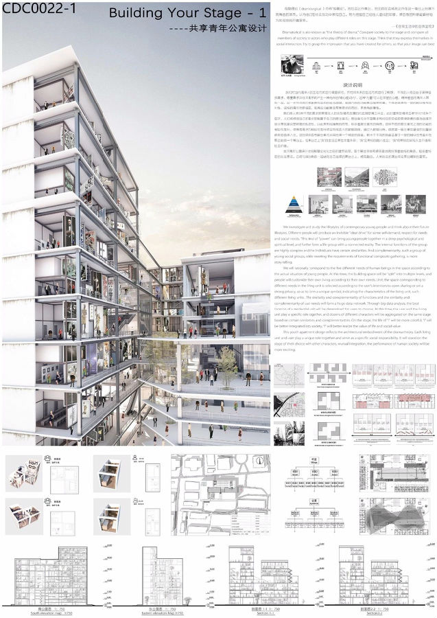 本次青年公寓设计对戏剧理论优化之后的建筑体现,每个居住单体和使用者共同扮演着独特的角色,担任着特定的社会责任,它将与其他角色一起站在自己选择的舞台之上,相互融合,人类社会的演出将会更加精彩的呈现。