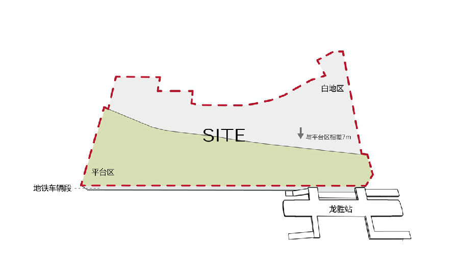 港铁天颂,深圳市龙华车辆段上盖物业开发项目的一期工程,位于龙华布龙路与和平路交接处,邻近地铁龙胜站,总用地面积约89410㎡,其中46.3%为车辆段平台区,其余为高度相差7米的白地区。