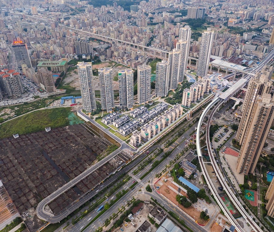 咽喉区、试车线、检修线、洗车线……作为地铁检修停靠站的车辆段地块,因其复杂功能造成的不规则形态及低荷载承受力,使得占基地过半面积的平台区在规划布局一开始,便需要将住区形象、结构选型、建造落地等多维度因素纳入设计考虑。