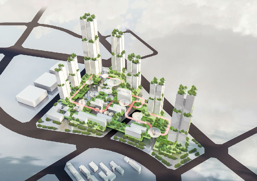 预审过后,我们遇到了一个考验:任务书中,新增了地标塔楼的规定位置,这样一来,原有的开放界面被打断了。在进一步优化过程中,通过调整居住建筑形态,来减少塔楼遮挡开放入口的影响,使方案仍保持面向城市开放的姿态,适应任务书的同时,很好地沿袭了最初的概念。除应对突如其来的变化,在建筑单体形态和立面等部分的不断优化,也使得整个项目能更好的达到设计的最初预想。