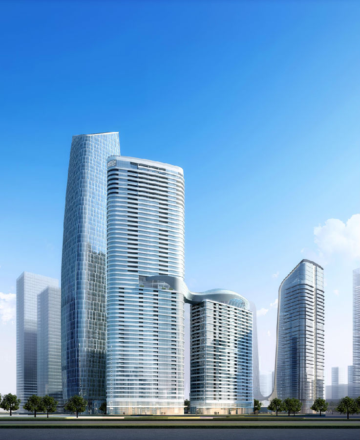 结构高度:1栋地上62层,205.2m;2栋地上60层, 197.60m ;3栋、4栋地上57层,188.90m