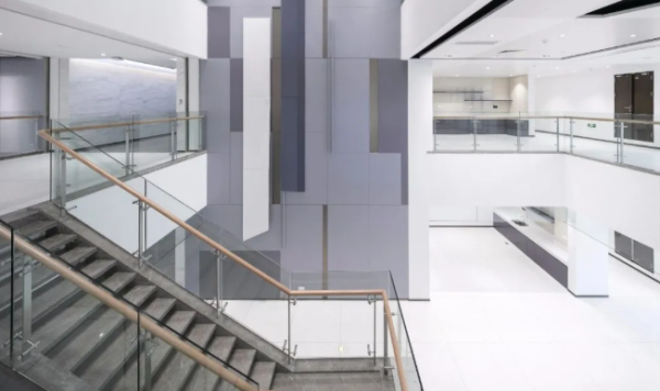 设计利用一个简单的L型形体围成内院,面向城市一侧形成完整界面。为打破秩序,L型体块嵌入中庭将建筑从中间切开,在面向城市界面与主入口庭院打开缝隙,让外部观者可以看到室内,实现信息渗透。同时,三个缝隙中置入红色楼梯,极具视觉冲击力,楼梯作为公共交通体系,将中庭与公共空间串联起来,成为打破整个PC模块化设计和秩序的一个“不安静”成分。