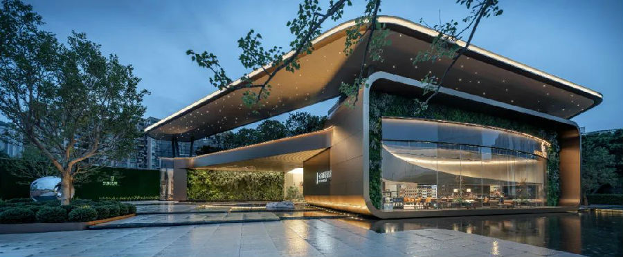 展示区依托场地核心区位,通过“去售楼处”设计思维重构空间叙事,尽展“大隐于市”的生活愿景。运营阶段创作性联合“方所”文化品牌基因打造“方舟客厅”复合空间,塑造城市之窗,营造游离于家的第二社交场,实现建筑形制与品牌运营互相激发的生活实景。