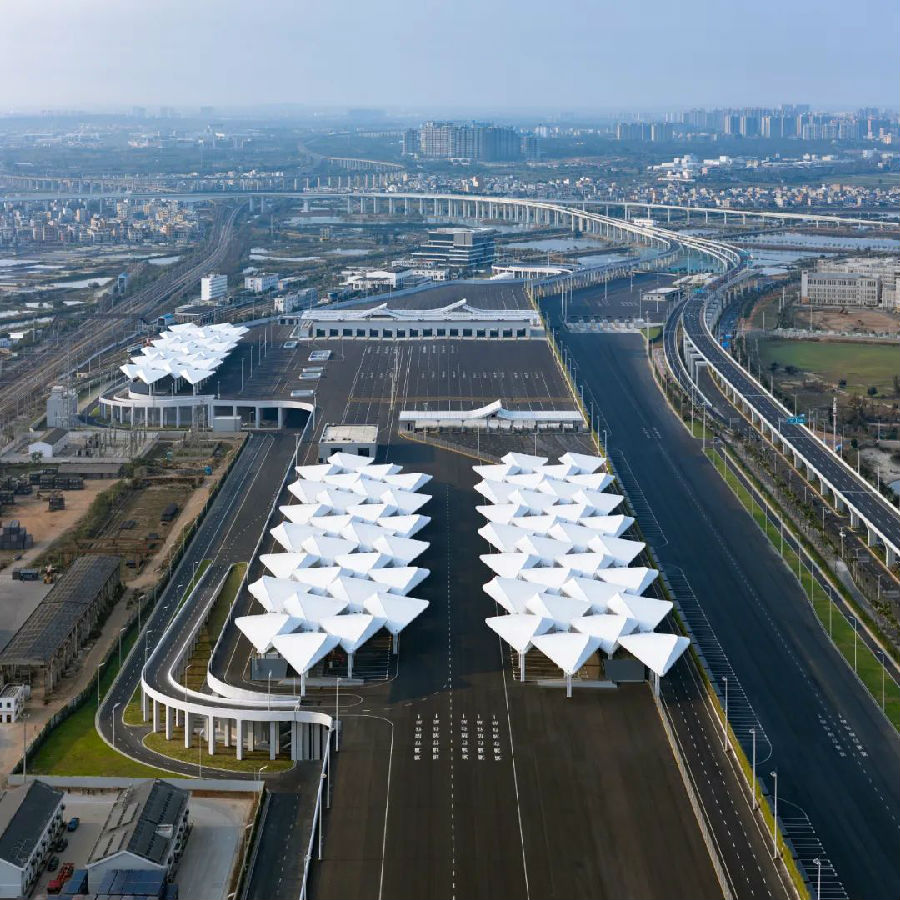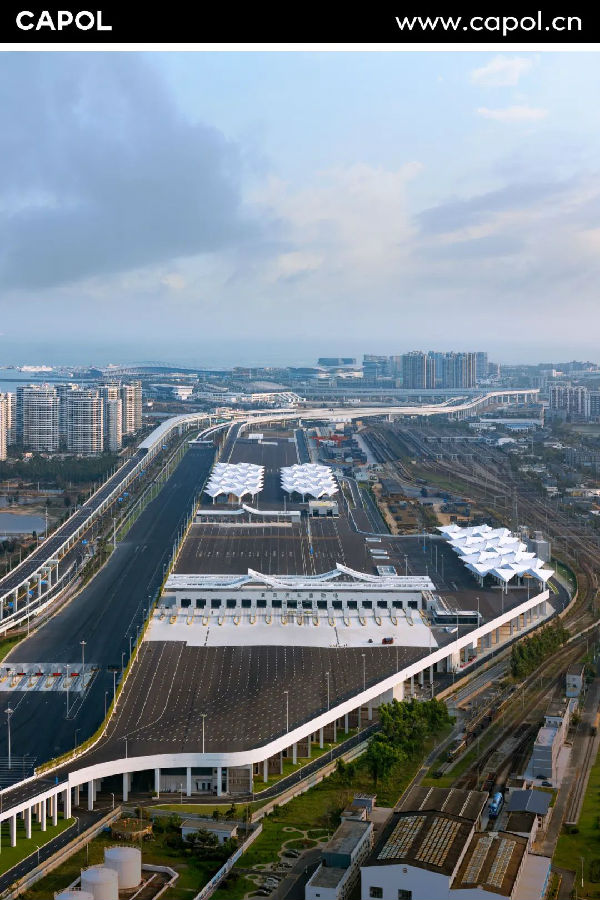 同时考虑台风季韧性设计,提前规划蓄车场地等应急方案。在满足口岸全天候运营需求的同时,以参数化设计实现琼岛地域文化元素与现代工程美学的有机融合。