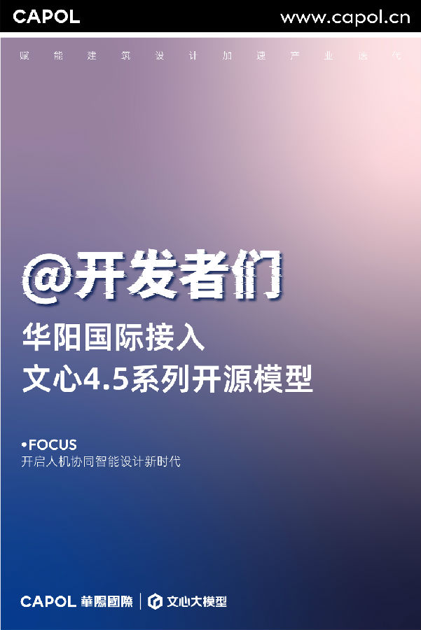 近日,华阳国际正式启动接入文心4.5系列开源模型。此次合作将重点聚焦建筑设计行业的核心需求,通过大模型技术的赋能,重塑建筑设计流程,开启人机协同智能设计新时代,为建筑工程全流程提供智能化解决方案。双方将共同探索AI技术与建筑行业的深度融合路径,从生产到管理、从设计到造价、从CAD到BIM等多个维度,推动行业数字化转型进程。