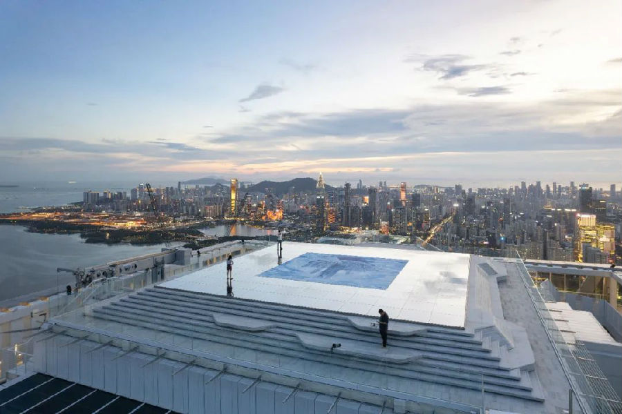 SIC深湾睿云中心,深超总首个大型TOD综合体,设计在屋顶打造免费开放的360°无边际城市观景台“天空之境”,目前中国唯一位于海拔超过350米的开放式屋顶平台。
