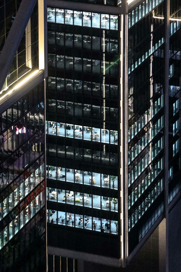 灯光穿透夜幕,创造的火花依然闪烁。总有人在执着拼搏,每栋大楼,都是照亮城市理想的灯塔。