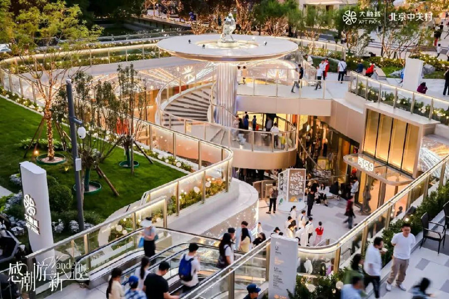 北京中关村ART PARK大融城西区,由华阳国际香港公司CAN Design主导设计,以屋顶公园与下沉广场等开放空间融入商业与社区生活,在既有商业上进行更新设计,引入多功能生活方式业态与公共服务,打造公园式商业新范本。