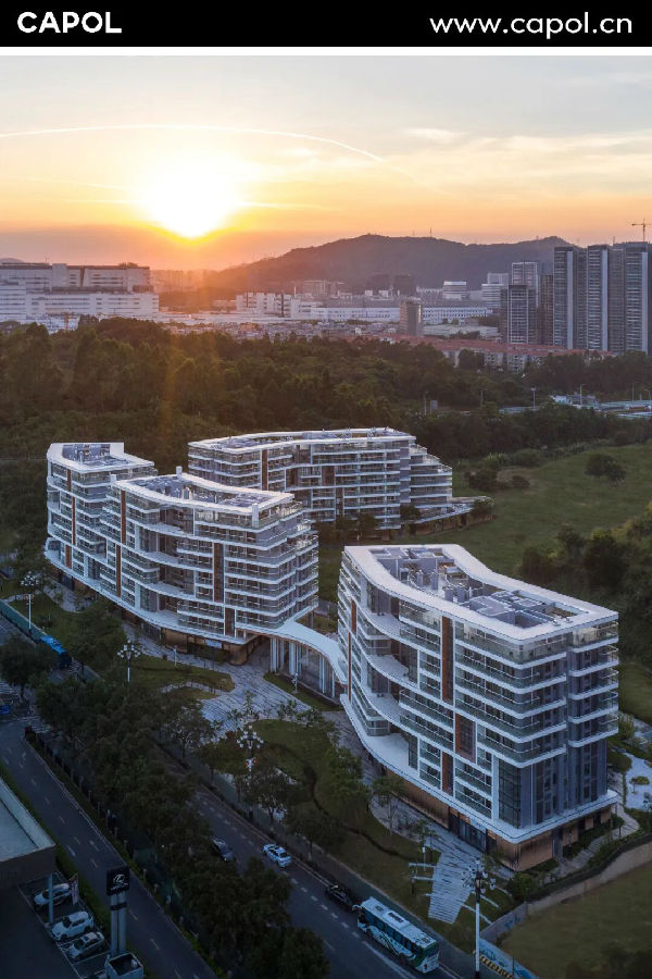 建筑不再以密度取胜,而以舒展回应自然。在高密度住宅成为常态的今天,项目以多层尺度塑造开放而生态的生活空间,通过平台悬挑与体块错动,创造丰富的立体绿化与自然通风体系。同时,结合遮阳立面、雨水回收与屋顶花园等被动节能策略,让建筑在节能与舒适间取得平衡,营造低碳、宜人的绿色社区。