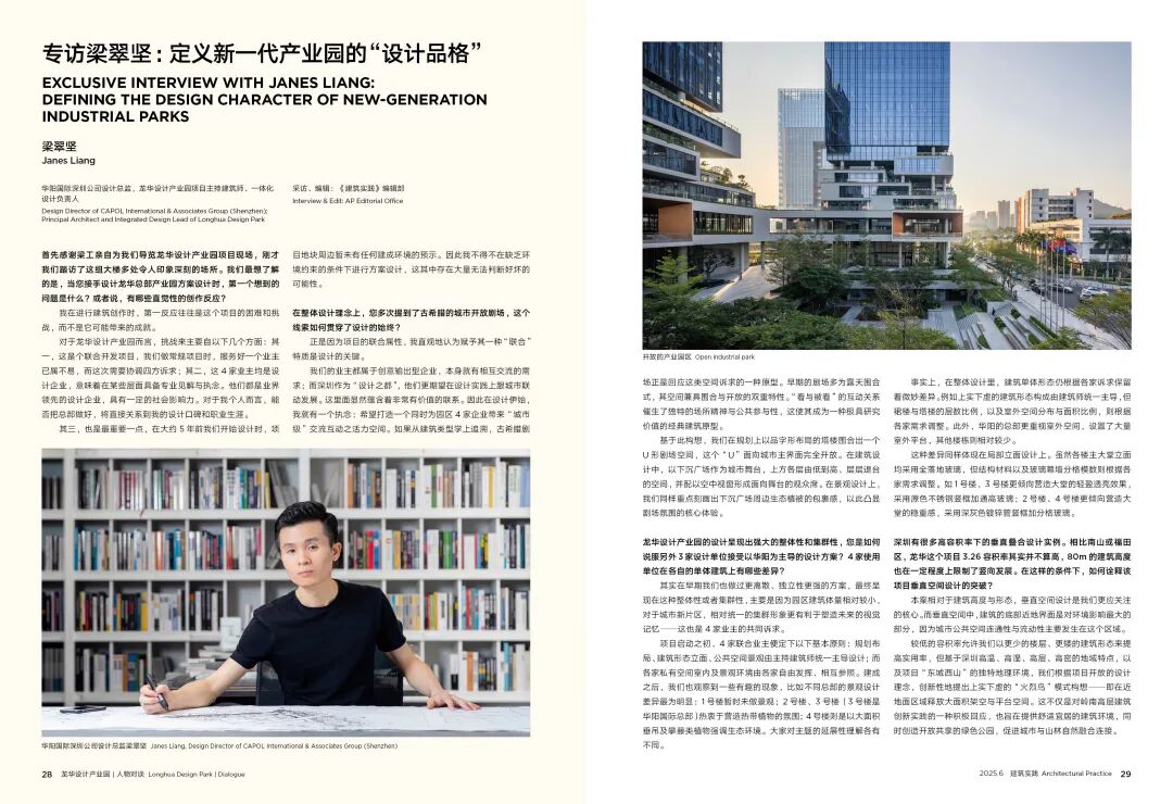我们对话项目主持建筑师、一体化设计负责人梁翠坚Janes,回溯联合破局的初心与叙事,拆解多企业集群共生的空间策略,细述技术入微的人文思考,揭开这座产业园从理念萌芽到落地成景的全周期创造脉络。