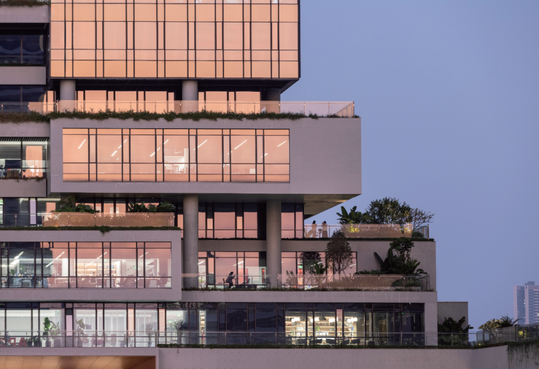 深圳有很多高容积率下的垂直叠合设计实例。相比南山或福田区,龙华这个项目3.26容积率其实并不算高,80m的建筑高度也在一定程度上限制了竖向发展。在这样的条件下,如何诠释该项目垂直空间的突破?