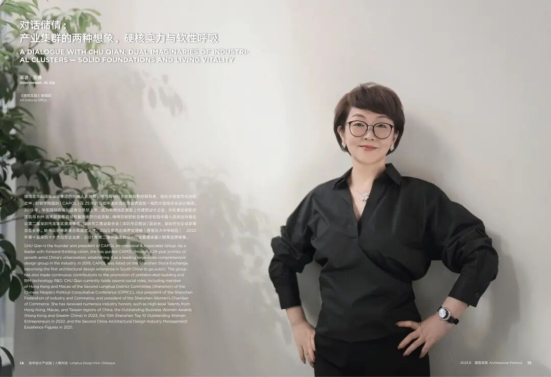 作为专刊首篇文章,我们对话项目总指挥储倩,双向解析产业集群的两种想象,从集团及产业园的硬核实力,到打造会呼吸的总部办公,全面解读龙华设计产业园建设背后的理想与现实。