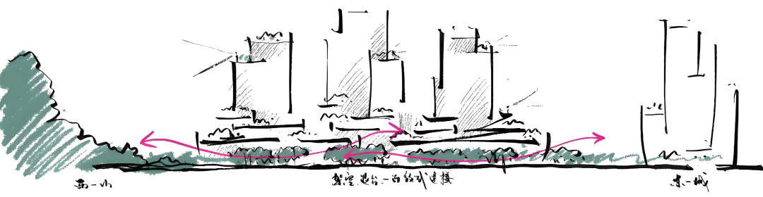 本案相对于建筑高度与形态,垂直空间设计是我们更应关注的核心。而垂直空间中,建筑的底部近地界面是对环境影响最大的部分,因为城市公共空间连通性与流动性主要发生在这个区域。